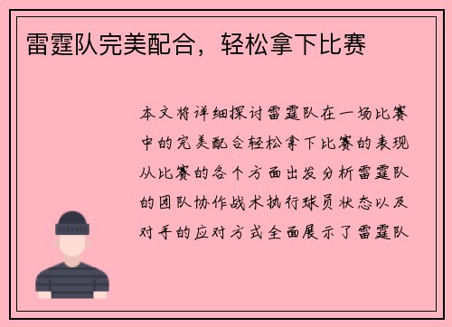本文将详细分析莱比锡红牛在客场取得胜利后,继续领跑积分榜的表现。从多个维度探讨这支球队的成功因素,阐明其技术、战术、球员状态及心理素质等方面的优势。莱比锡红牛的强大实力与持续表现已成为欧洲顶级联赛中的一道亮丽风景。本文将从球队的整体表现、关键球员的作用、主教练的战术调整以及球队的凝聚力等方面进行深入剖析,力求为读者展现莱比锡红牛作为领跑者的强大实力与未来潜力。 1、莱比锡红牛的整体表现 莱比锡红牛...